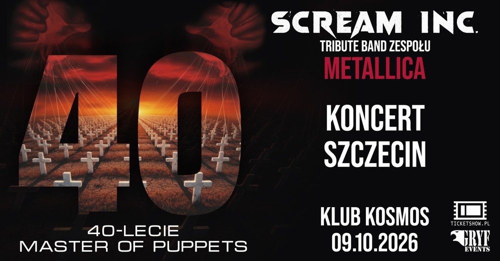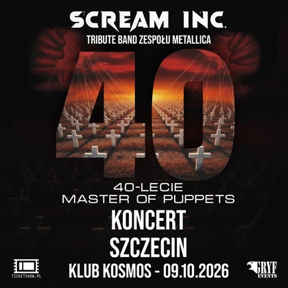 Z okazji 40. rocznicy wydania „Master of Puppets” Scream Inc., jeden z najlepszych tribute bandów legendarnej Metalliki, wyrusza w trasę koncertową, która przez cały 2026 rok będzie celebracją tego przełomowego wydawnictwa. Podczas koncertów zespół wykona cały album „Master of Puppets”, z zachowaniem charakterystycznego brzmienia, aranżacji, energii i klimatu oryginału. Uzupełnieniem setlisty będą również inne, największe klasyki Metalliki z różnych okresów twórczości zespołu.