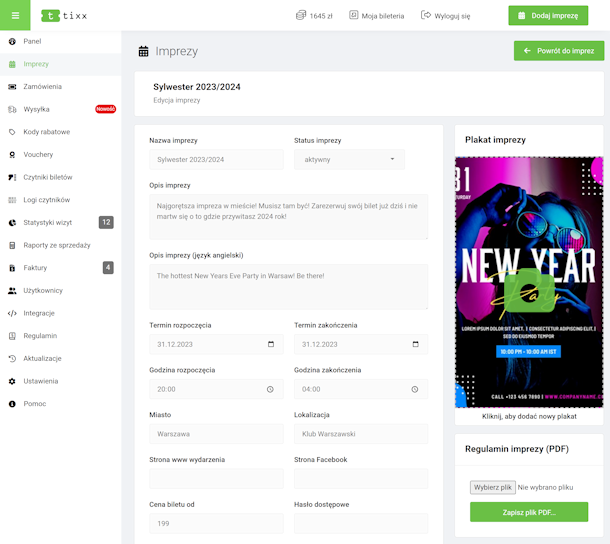 Za pomocą prostego formularza dodasz imprezę, określisz jej termin, uzupełnisz opis po polsku i angielsku, a także dodasz plakat.